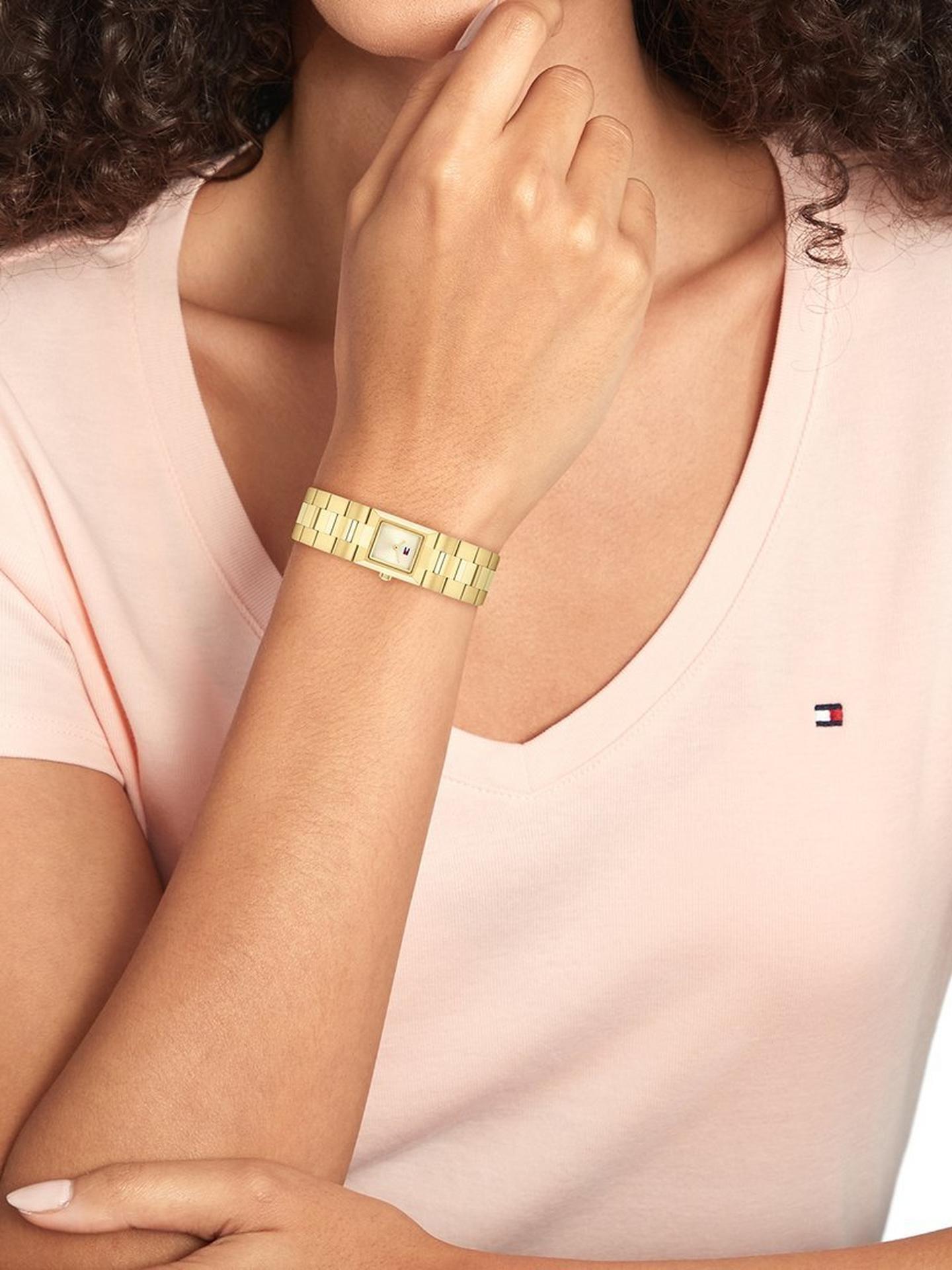 Tommy Hilfiger női karóráit a csillogás jegyében tervezte meg. Rafináltan elhelyezett, tokot és számlapot díszítő ékkövek, néhol gyöngyház kagyló és kerámia ráma használata fokozza a luxus érzetét. Az amerikai zászló színeiből született márkalogó, és annak szimbolikus ereje, frissességgel és lendületes megjelenéssel párosul.