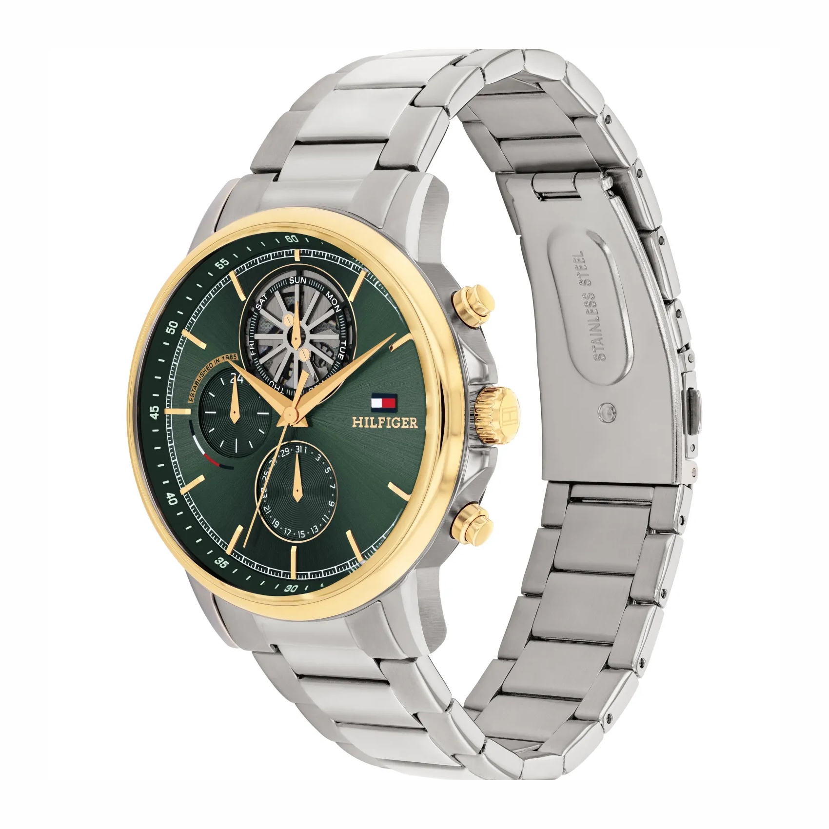 A legújabb férfi karóra kollekciót domináns jellegén túl, a Tommy Hilfiger nyomatú varrott bőrszíj, a robosztus óratok, és az ennek megfelelően kialakított korona jellemzi. A számlap rajzolata és színösszeállítása tovább fokozza az összhatást, és mágnesként vonzza a tekintetet. A márka újdonságait az egész világ figyelemmel kíséri, modelljei megjelenésükben egyedülállóak, vitathatatlanul divatot teremtenek.
